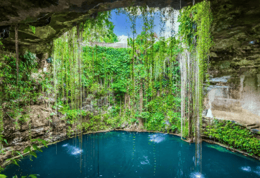Pozos naturales de agua dulce formados por la erosión de la roca caliza. Son considerados sitios sagrados por la cultura maya y destacan por su agua cristalina. Aguas transparentes de color azul turquesa, Formaciones rocosas y en algunos casos, cuevas subterráneas, Vegetación selvática alrededor.